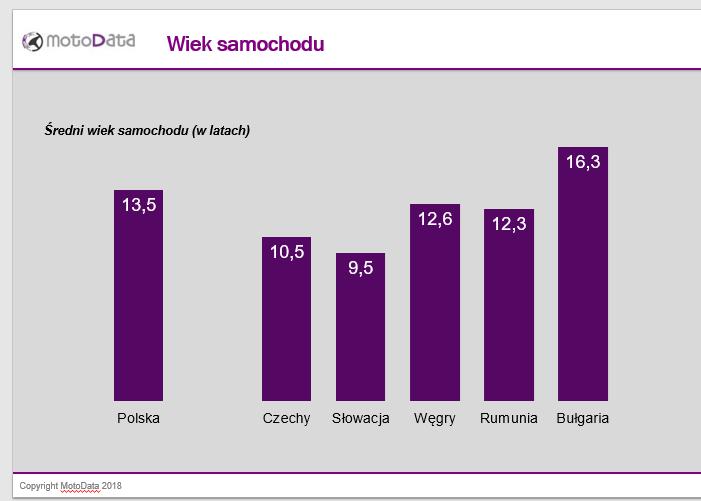 Według Eurostatu w Polsce 33,7% samochodów ma ponad 20 lat. Dane są oparte o nieaktualizowane przez lata dane w CEPiK. Dane z badania z roku 2018 Moto Data pokazują realne dane, odmładzając park samochodów osobowych do średniej 13,5 lat.
